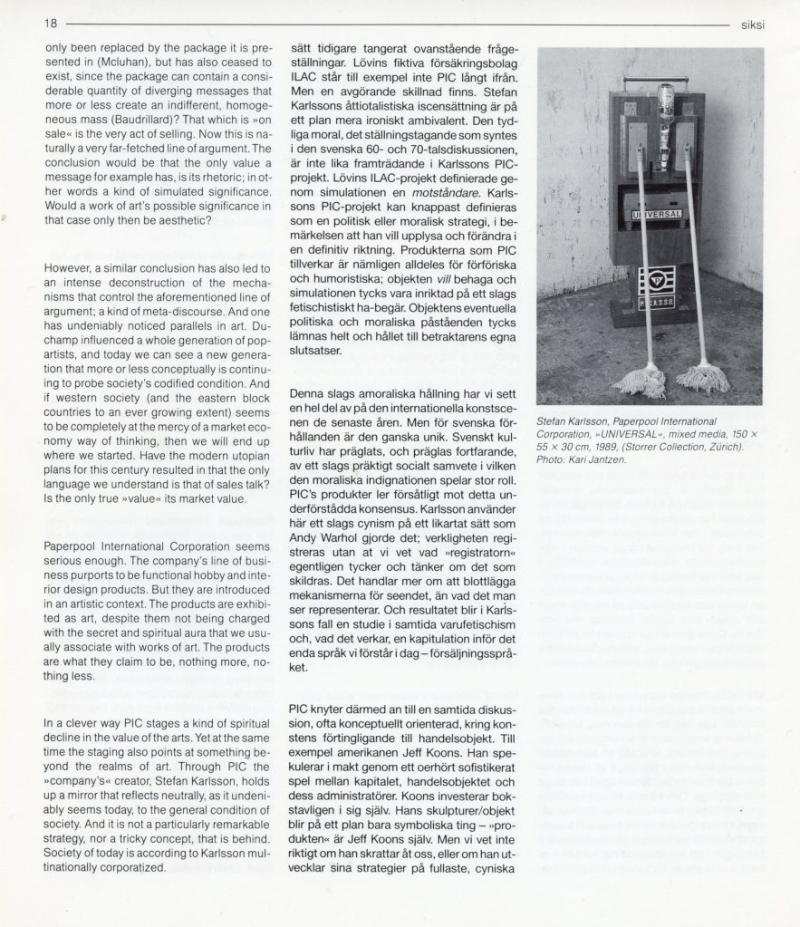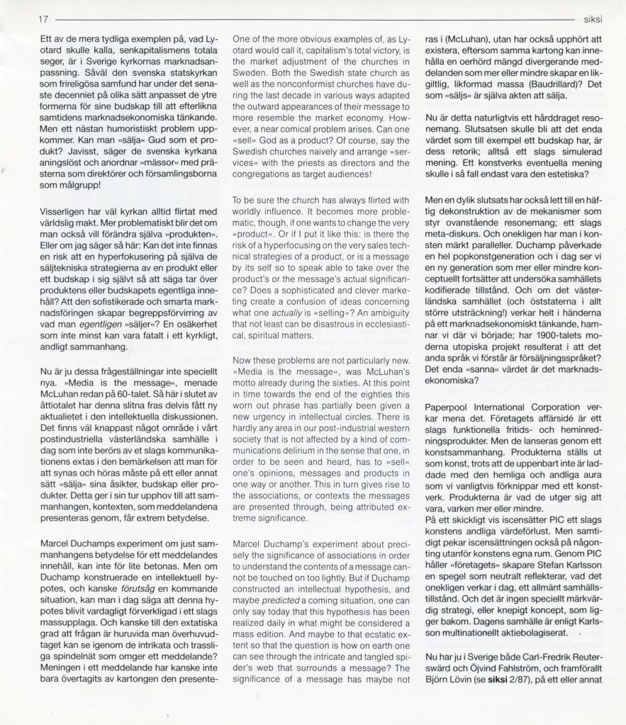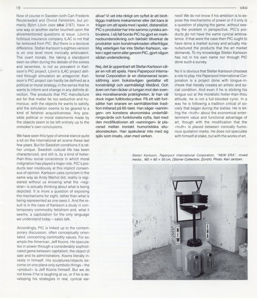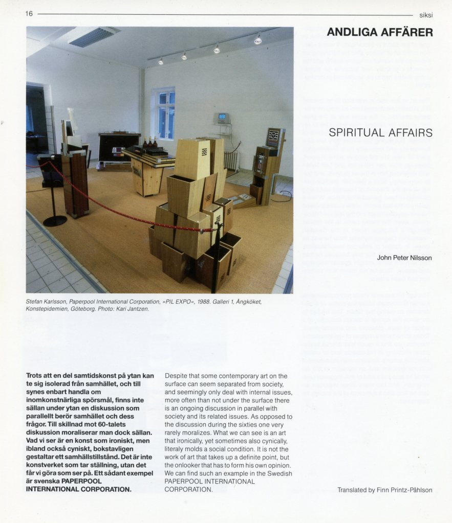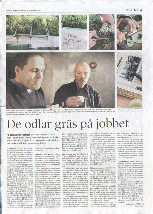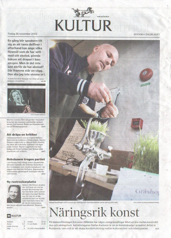 Press/ Media Dagens Nyheter Kultur 1996 Svenska Dagbladet Kultur 2002 John Peter Nilsson, SIKSI, Nordic Art Review, 1989 Nöjesguiden, Göteborg 1993