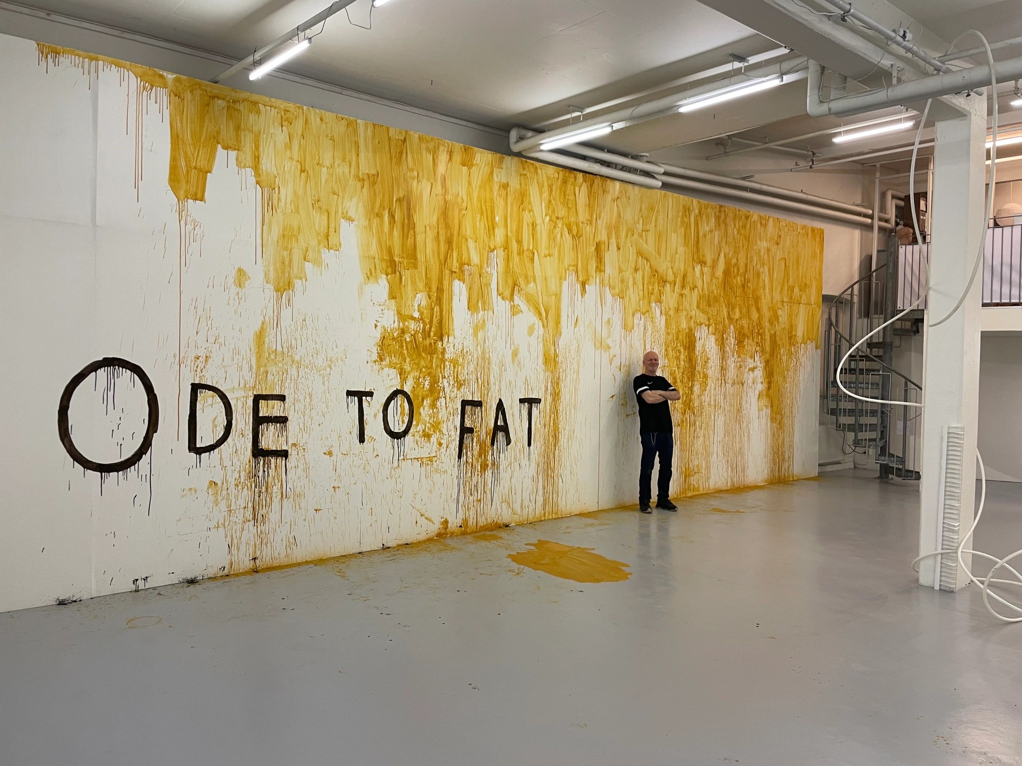 ODE TO FAT, fett på trä, 10 x 4 meter, 2021, Konsthallen 3:e Våningen, Göteborg