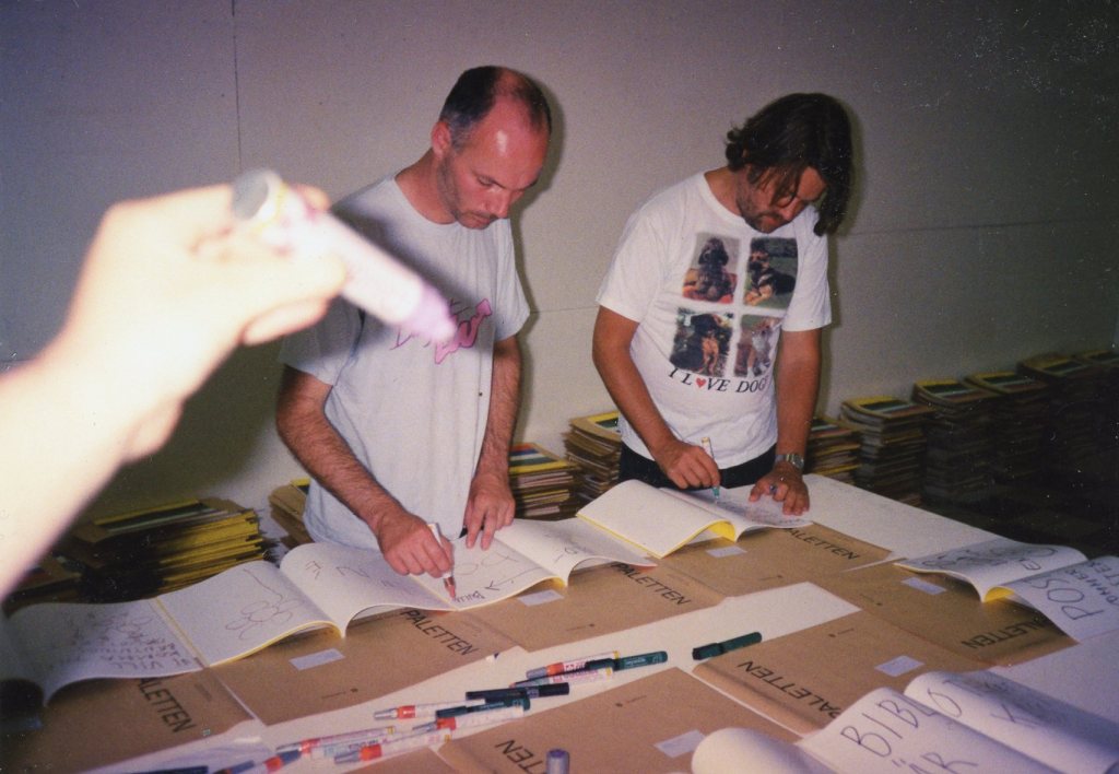 Sambuca-gruppen, Stefan Karlsson, Mats Olsson och Virgil Dejarv. ritar 1000 original i Konsttidskriften Paletten 1993.