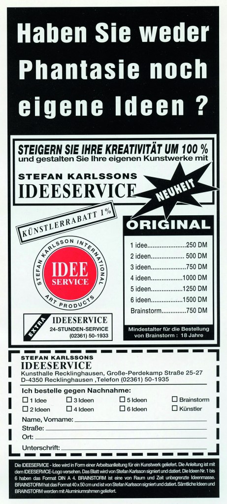 Annons i Kunstforum International i samband med min separatutställning på Kunsthalle Recklinghausen 1993.